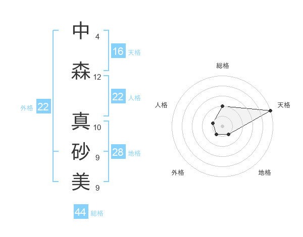 中森 真砂美さんの総格は44画の2点!