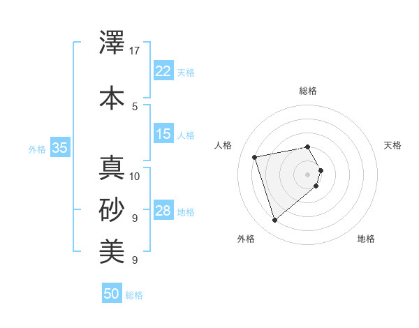 澤本 真砂美さんを姓名の画数から五運を鑑定