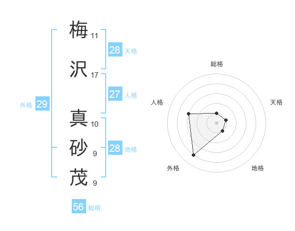 梅沢 真砂茂さんを姓名の画数から五運を鑑定