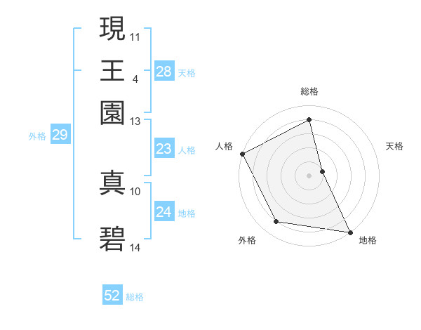 現王園 真碧さんの総格は52画の4点!