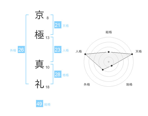 京極 真礼さんの天格は21画の5点!