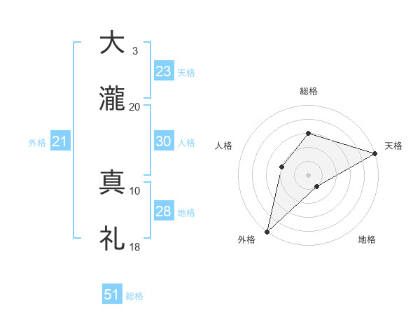 大瀧 真礼さんの天格は23画の5点!