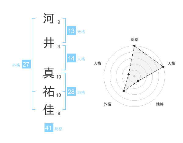 河井 真祐佳さんを姓名の画数から五運を鑑定