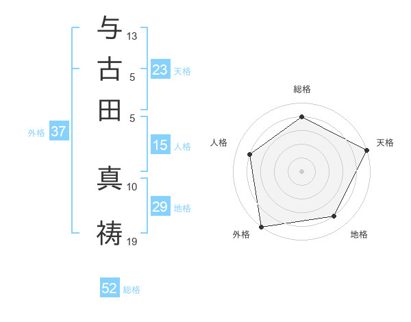 与古田 真祷さんを姓名の画数から五運を鑑定