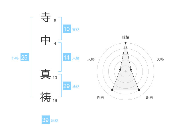 寺中 真祷さんの総格は39画の5点!