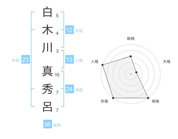 白木川 真秀呂さんの外格は23画の5点!
