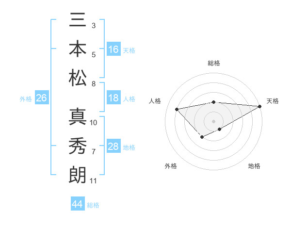 三本松 真秀朗さんを姓名の画数から五運を鑑定