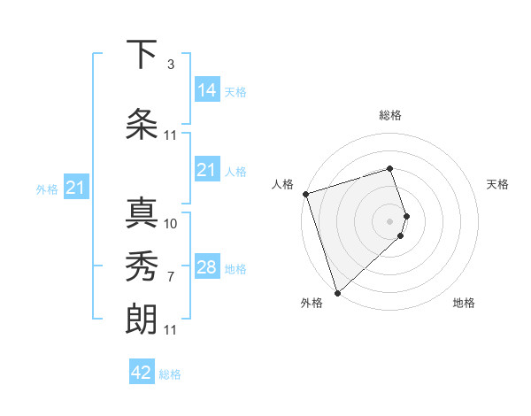 下条 真秀朗さんを姓名の画数から五運を鑑定