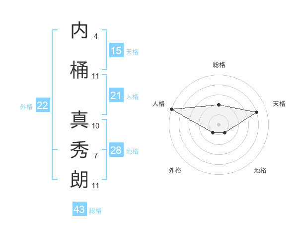 内桶 真秀朗さんを姓名の画数から五運を鑑定