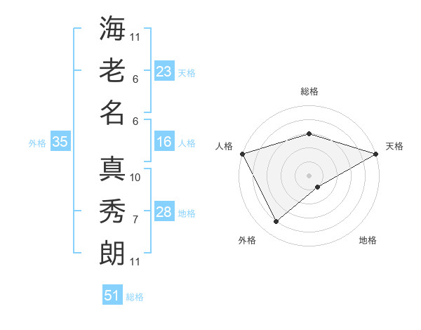 海老名 真秀朗さんの総格は51画の3点!