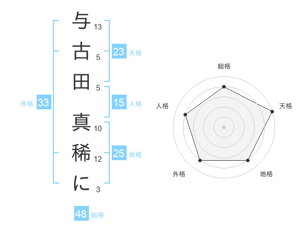 与古田 真稀にさんの天格は23画の5点!
