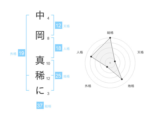 中岡 真稀にさんの総格は37画の5点!