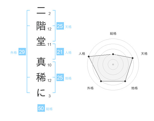 二階堂 真稀にさんを姓名の画数から五運を鑑定