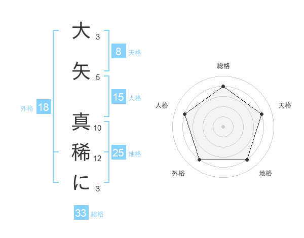 大矢 真稀にさんの天格は8画の4点!