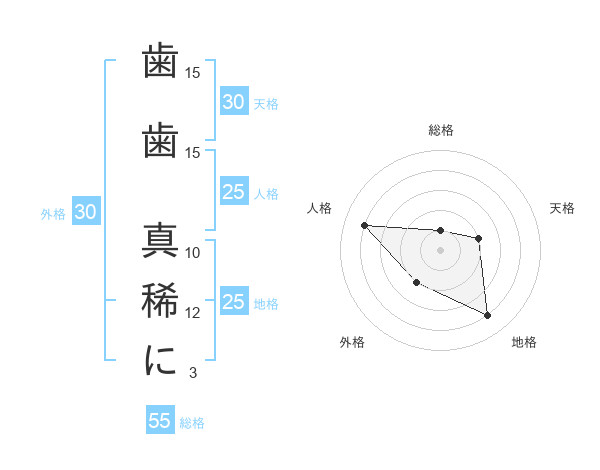 歯歯 真稀にさんの総格は55画の1点!