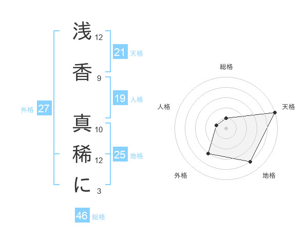 浅香 真稀にさんを姓名の画数から五運を鑑定