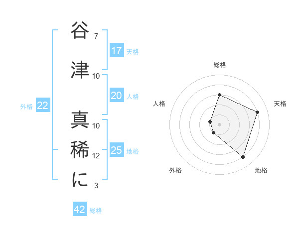 谷津 真稀にさんを姓名の画数から五運を鑑定
