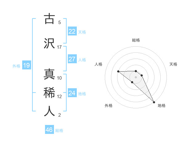 古沢 真稀人さんを姓名の画数から五運を鑑定