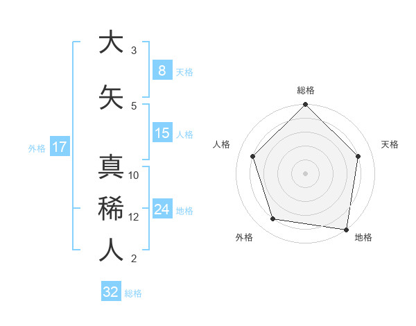 大矢 真稀人さんを姓名の画数から五運を鑑定