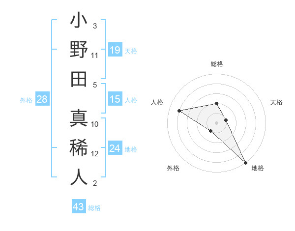 小野田 真稀人さんを姓名の画数から五運を鑑定