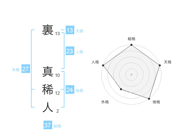 裏 真稀人さんの総格は37画の5点!