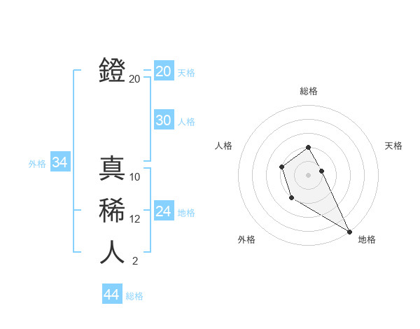 鐙 真稀人さんの総格は44画の2点!