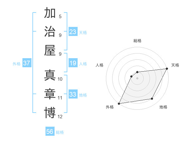 加治屋 真章博さんを姓名の画数から五運を鑑定