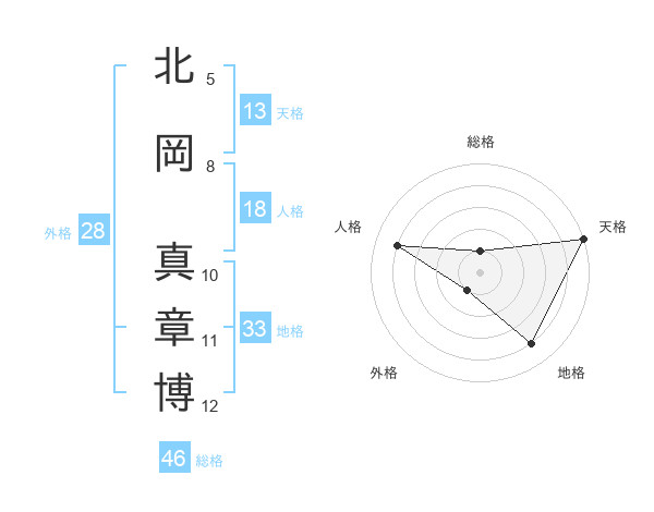 北岡 真章博さんを姓名の画数から五運を鑑定