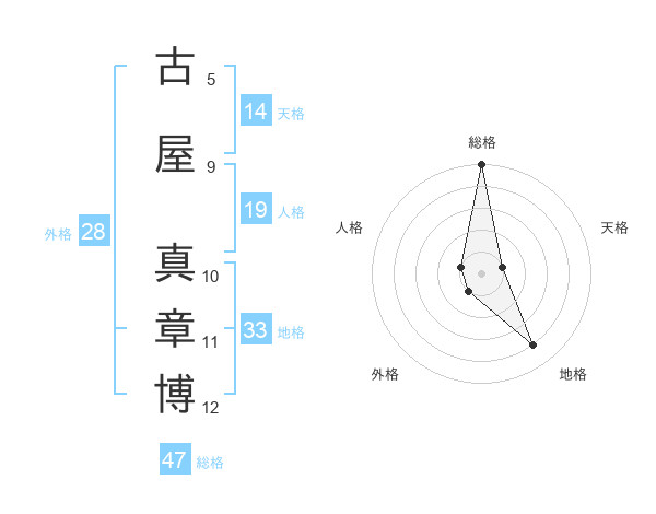古屋 真章博さんの総格は47画の5点!