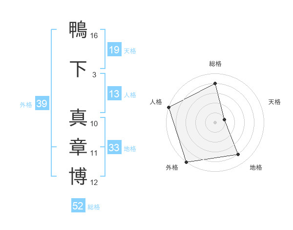 鴨下 真章博さんを姓名の画数から五運を鑑定