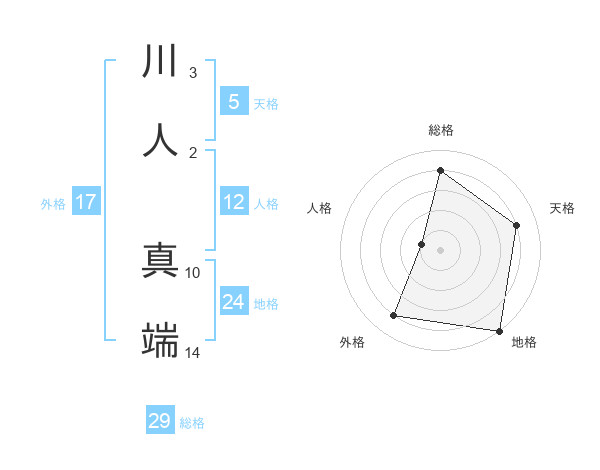 川人 真端さんの総格は29画の4点!