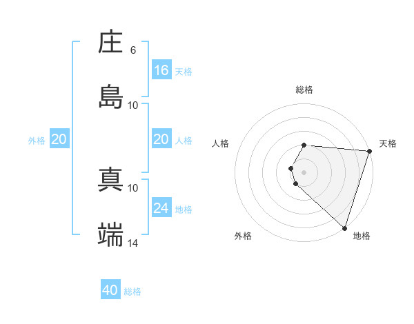 庄島 真端さんの天格は16画の5点!