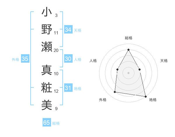 小野瀬 真粧美さんを姓名の画数から五運を鑑定