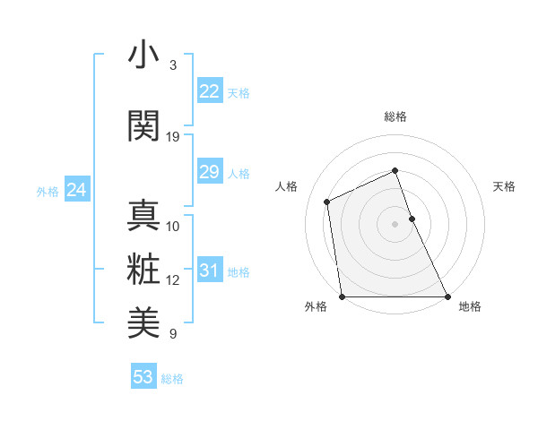 小関 真粧美さんを姓名の画数から五運を鑑定