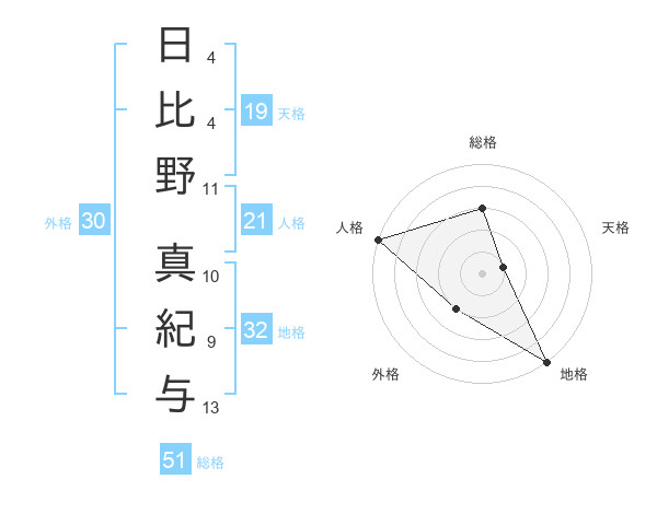 日比野 真紀与さんを姓名の画数から五運を鑑定