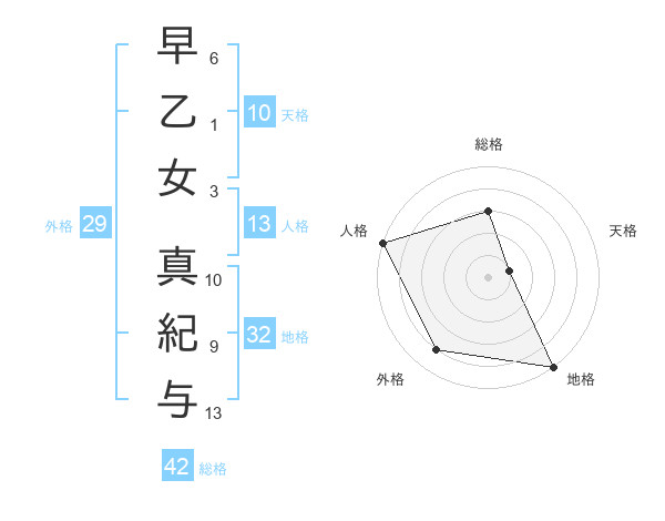 早乙女 真紀与さんを姓名の画数から五運を鑑定