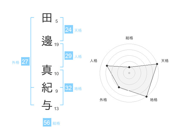 田邊 真紀与さんを姓名の画数から五運を鑑定
