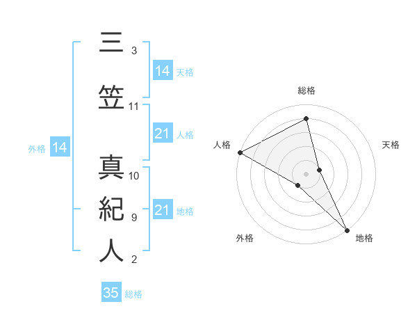 三笠 真紀人さんを姓名の画数から五運を鑑定