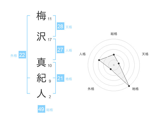 梅沢 真紀人さんを姓名の画数から五運を鑑定