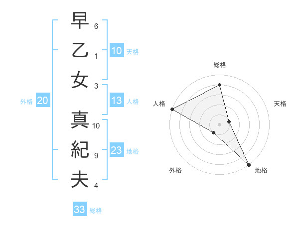 早乙女 真紀夫さんの総格は33画の4点!