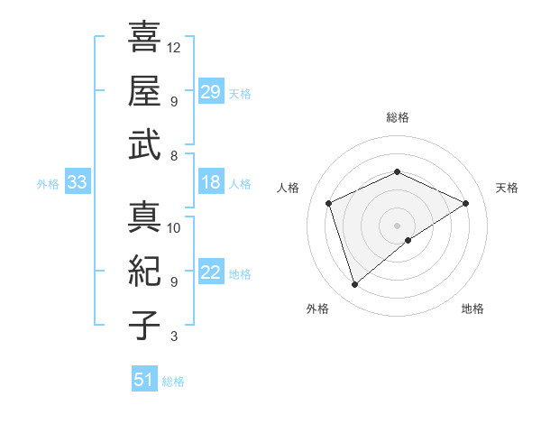 喜屋武 真紀子さんの総格は51画の3点!