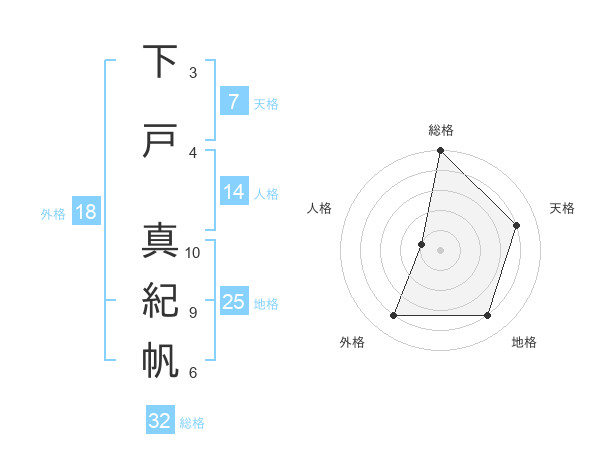 下戸 真紀帆さんを姓名の画数から五運を鑑定