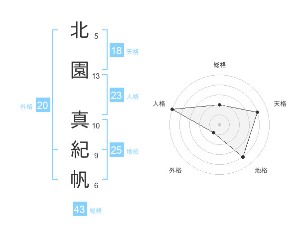 北園 真紀帆さんの天格は18画の4点!