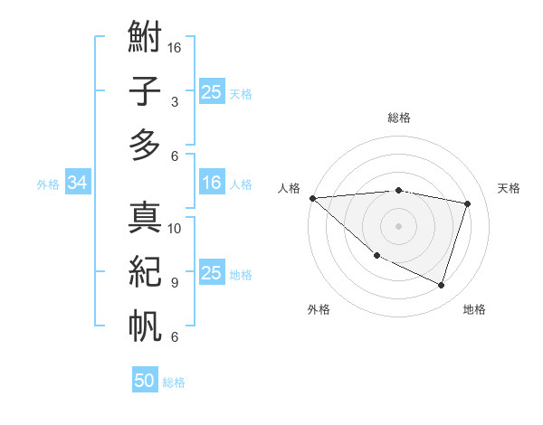 鮒子多 真紀帆さんを姓名の画数から五運を鑑定