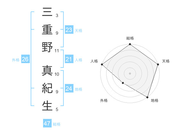 三重野 真紀生さんを姓名の画数から五運を鑑定