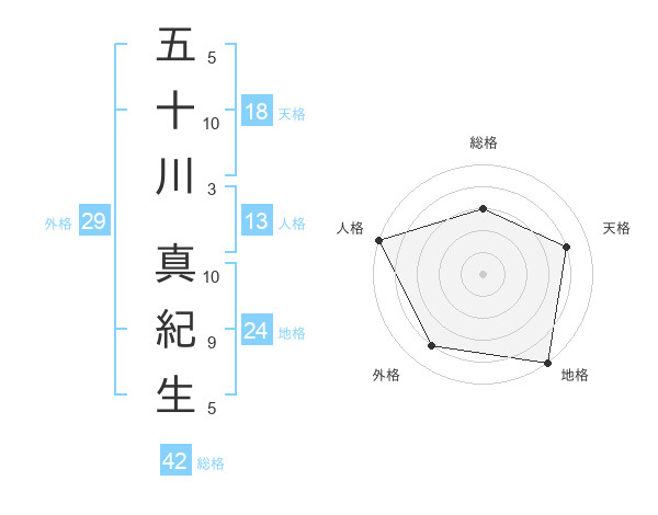 五十川 真紀生さんの総格は42画の3点!