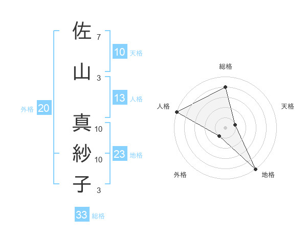佐山 真紗子さんを姓名の画数から五運を鑑定