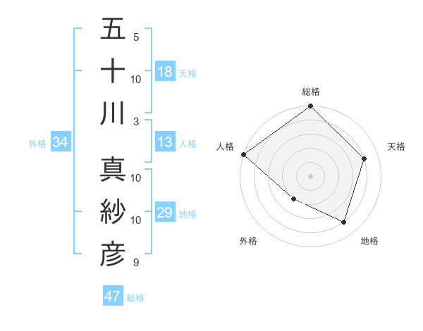 五十川 真紗彦さんを姓名の画数から五運を鑑定