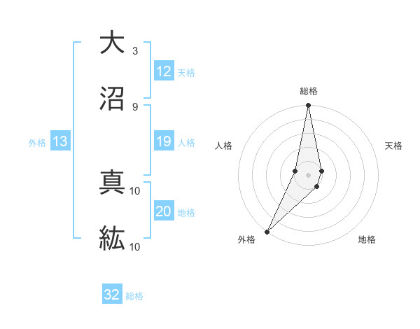大沼 真紘さんを姓名の画数から五運を鑑定