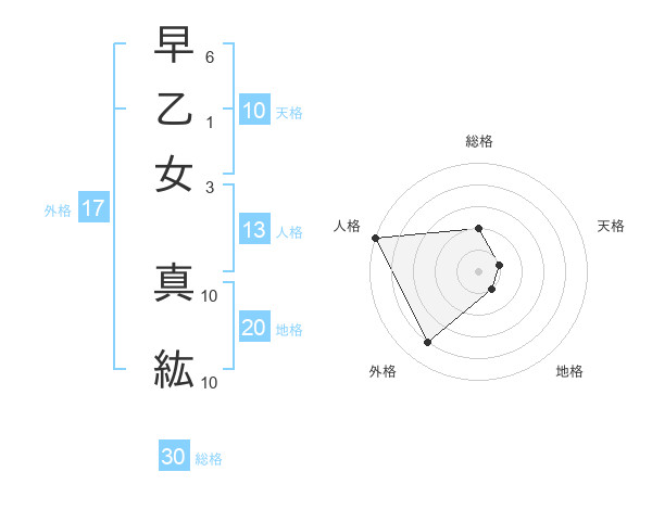 早乙女 真紘さんの総格は30画の2点!